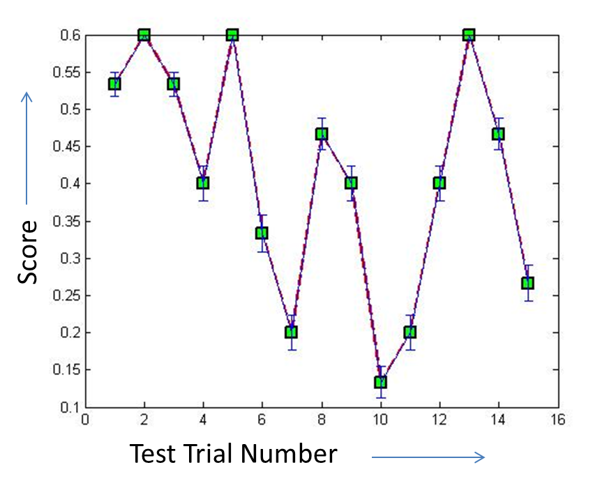 Figure6. Plot of score as a measure of correctness of response versus the test trial number averaged for all the 12 subjects